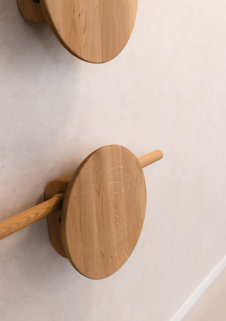 Výrazným a osobitým prvkem interiéru je stroj ze sekce domácí gym od značky Javorina, který je hrdě umístěn na stěně proti vstupu a svým tvarem působí jako symbolický vykřičník.
