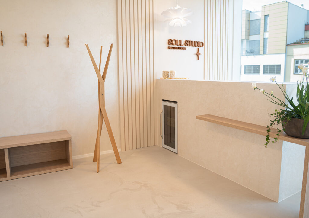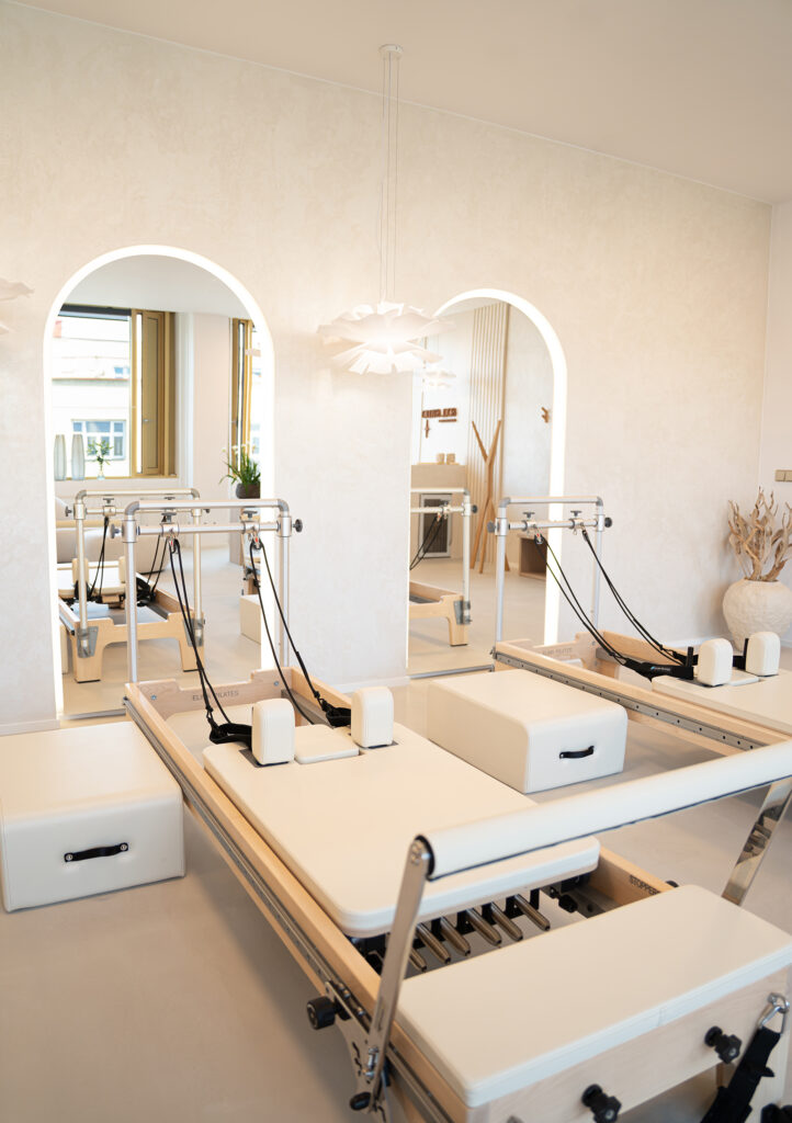 Interiér Pilates Studia Soul se nachází v samotném centru města Zlín a je navržen jako moderní prostor pro cvičení na nových strojích Elina Pilates Reformer.