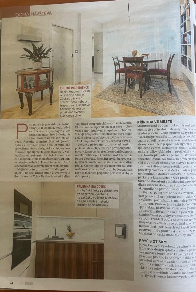 Březen 2025 vyšla má realizace v tištěné formě MLADÉ FRONTĚ DNES -v magazínu DOMA DNES.